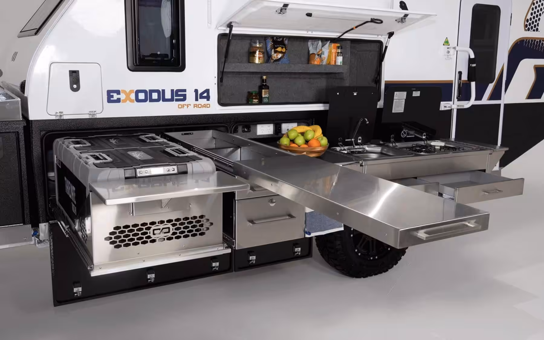 Look, we hear you; it’s the most expensive camper on our list, but Exodus 14 is for people who want the best and don’t mind paying for it. Built with a monocoque, single-piece moulded construction, it’s essentially take-anywhere-able and has the comfort levels of a hotel frequented by people with surnames like Musk and Bezos.