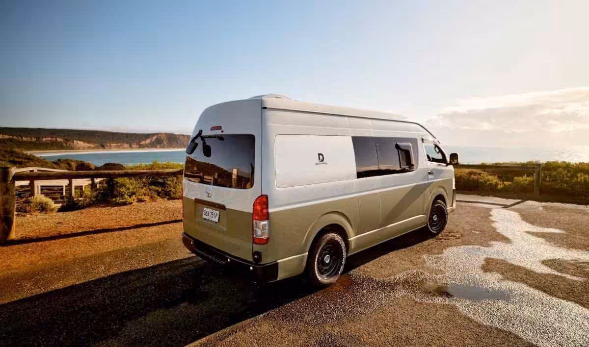 Based on the Toyota Hiace LWB GL, you’ll also find as standard in the sale of these campervans an external shower, rear kitchenette with gas cooktop and storage options throughout. Upgradable options include a heavy-duty towbar, All-Terrain tyres, a swivel passenger seat, and an electrical system upgrade to extend your off-grid travels.