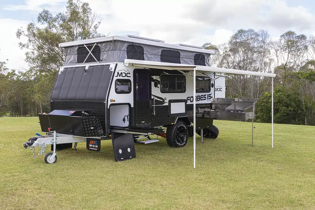 Like many of the pop top caravans on this list, the Ascent 15 has combined off-road features with comfortable living. So basically, you get to feel comfortable regardless of how remote your campsite is. With bedding, seating, storage and an ensuite on the inside, cooking is alfresco in this pop top caravan.