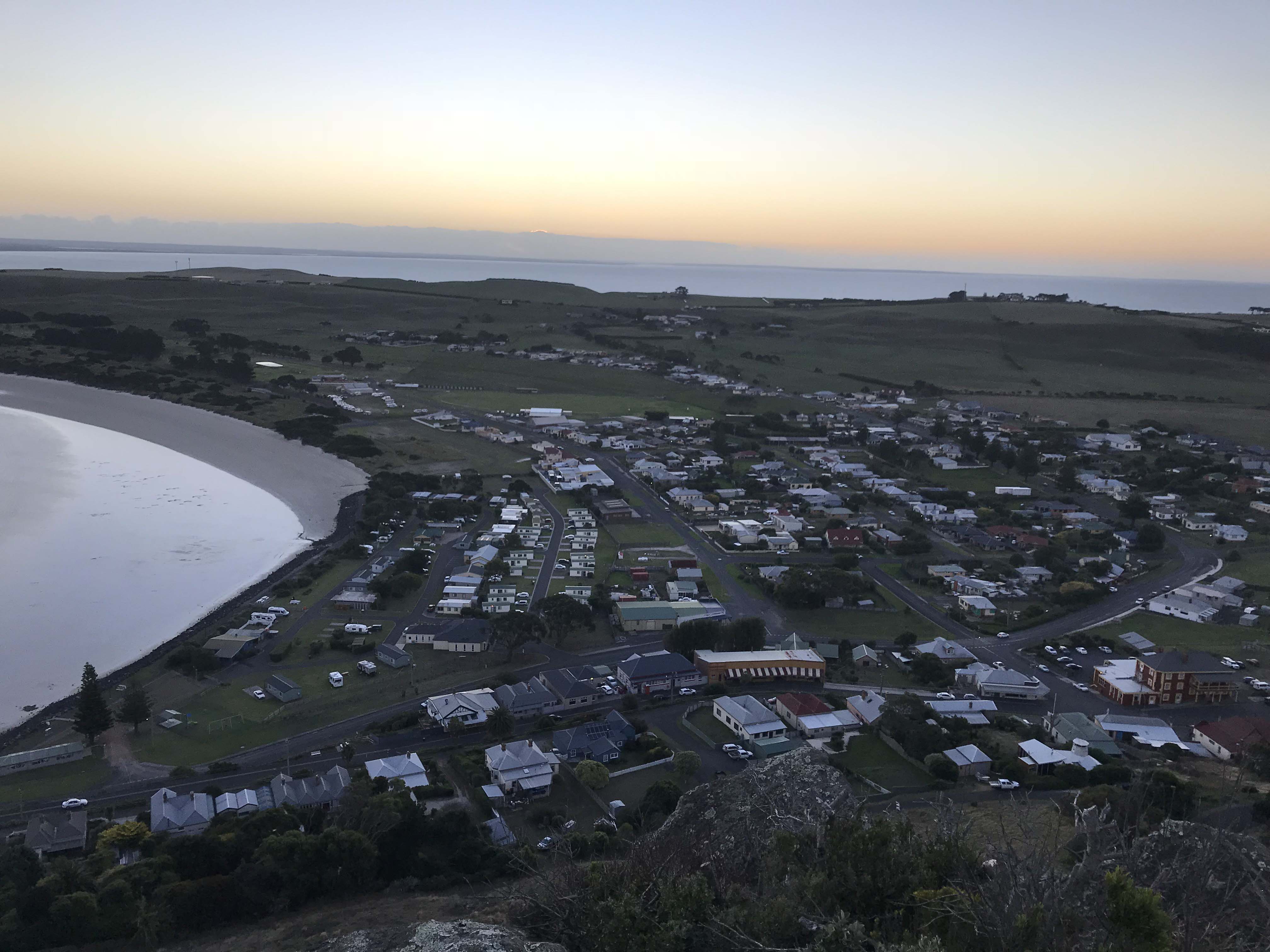 After a long chat to a lady with the most battered LandCruiser you’ll ever see, travelled for 30 years across Australia, and who was catching her own fish to smoke for super, I headed to the chip shop on the front, and ordered my first-ever striped trumpeter; and chips. Fantastic. I’d need the energy too, for as the sun was nearing the horizon if I wanted to grab a sunset shot over the town I had to ascend the rather obvious landmark – The Nut.