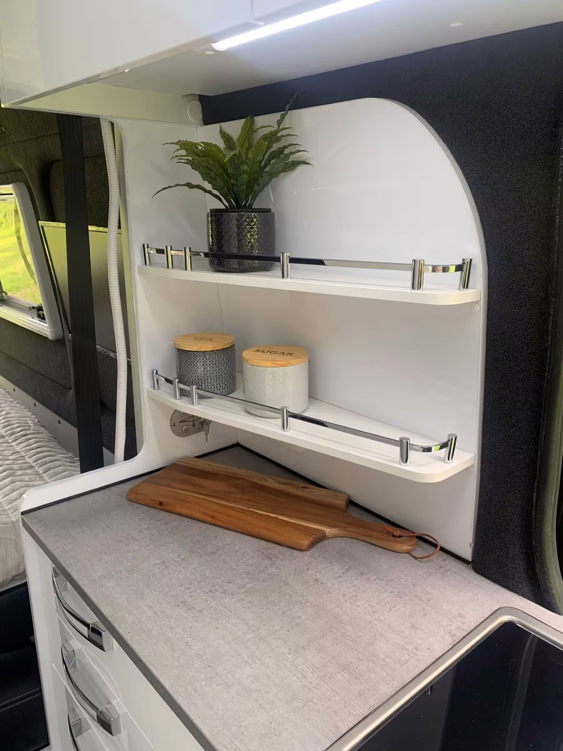 Outside you’ll find an electric entry step, tinted rear barn door windows and an electric awning. The awning boasts lighting and can be lowered at the touch of a button. A BBQ fitting can be found outside for those times you want to make the most of the good weather.