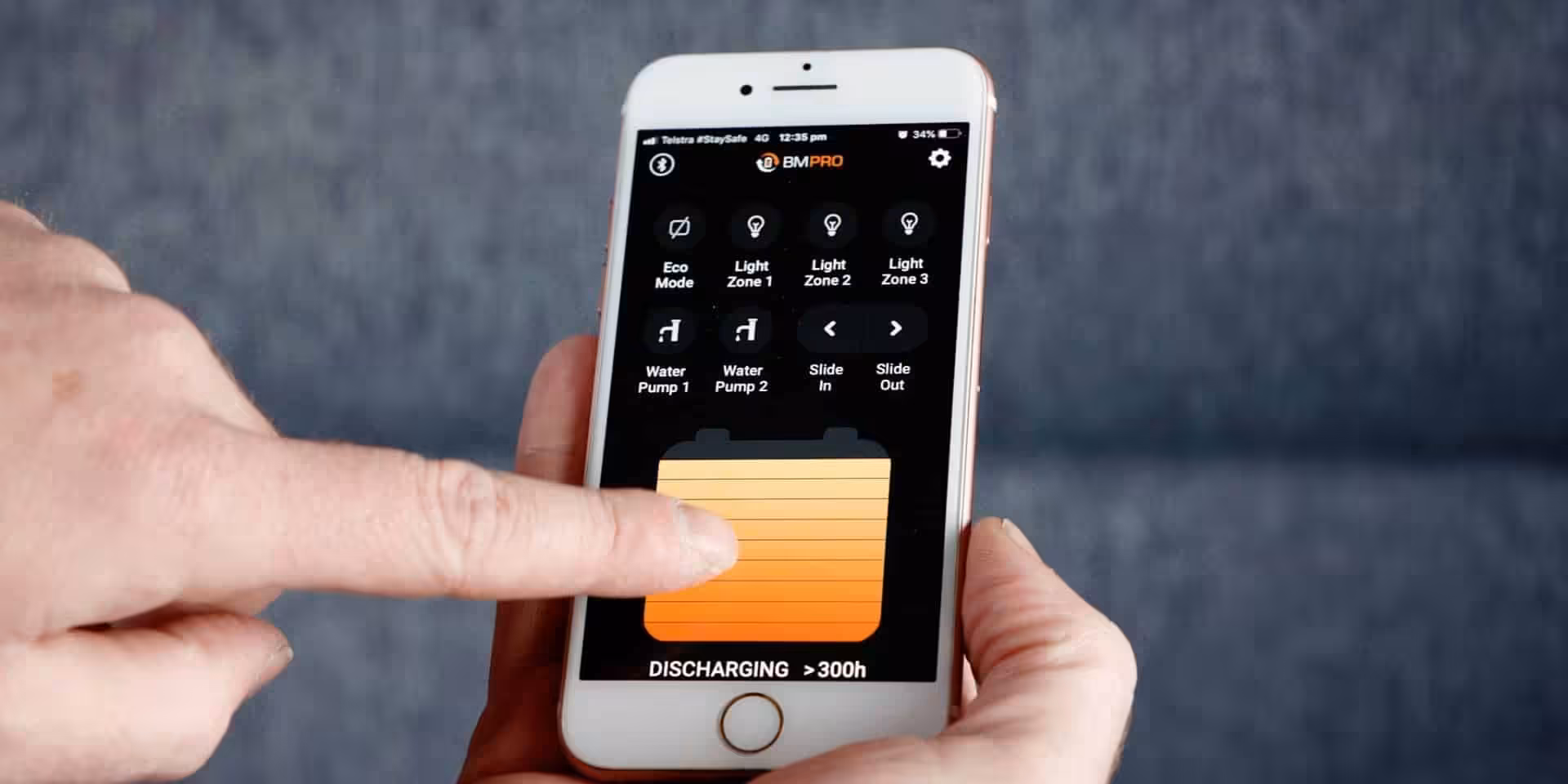 To use the app, the customer pairs their mobile phone with a smart hardware device called the OdysseyLink103 via Bluetooth. The OdysseyLink103 is connected to the BatteryPlus35-II power management system. OdysseyLink103 is supplied standard with all 2020-2021 caravan models equipped with BMPRO power management systems.