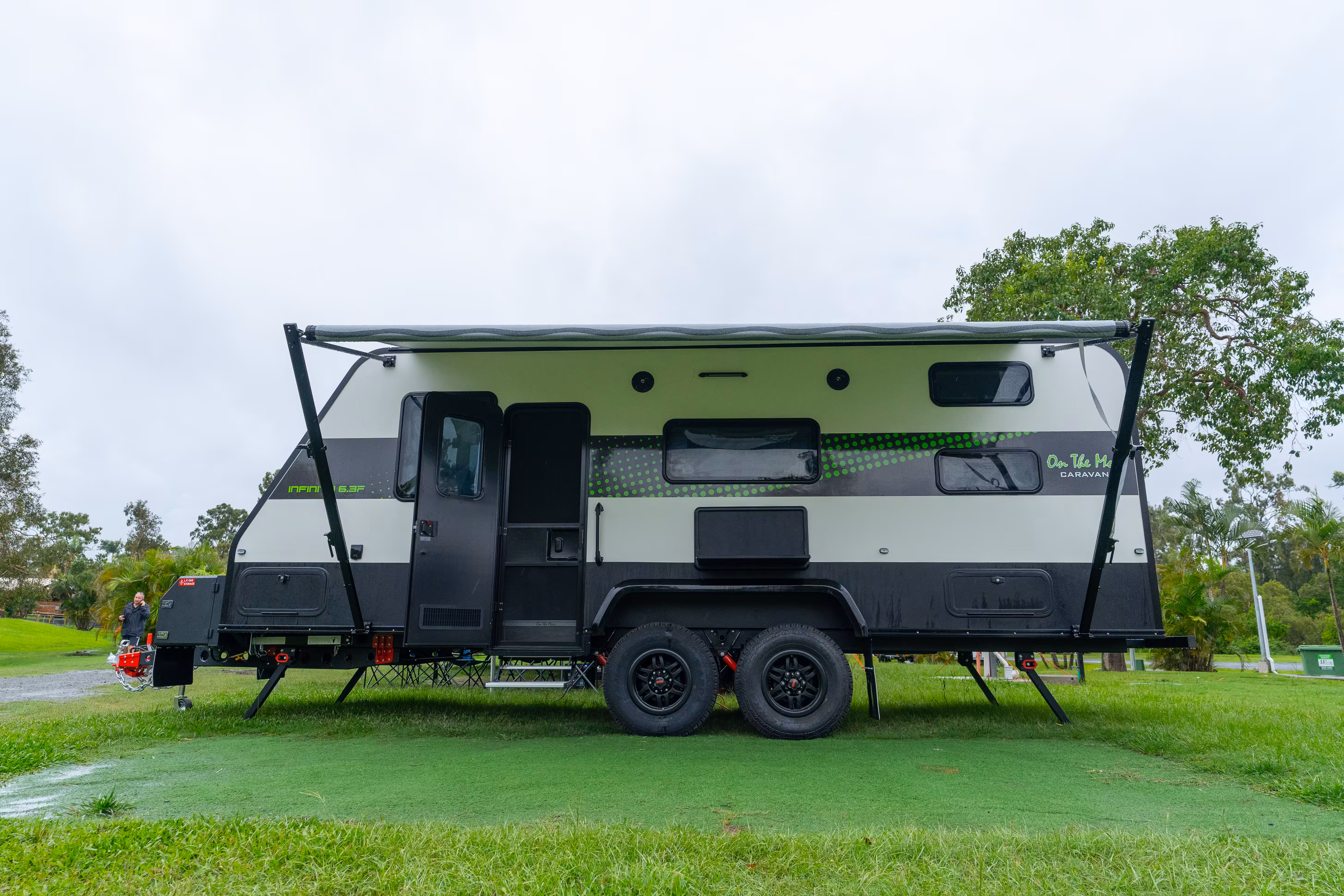 Other features that distinguish an off-road caravan from a touring or semi off-road caravan include a raised body for better ground clearance, a reinforced chassis, independent suspension, underbody and cladding protection and, in some cases, brush guards. Off-road caravans also have the makings for extended off-grid stays, with large water and power capacity.