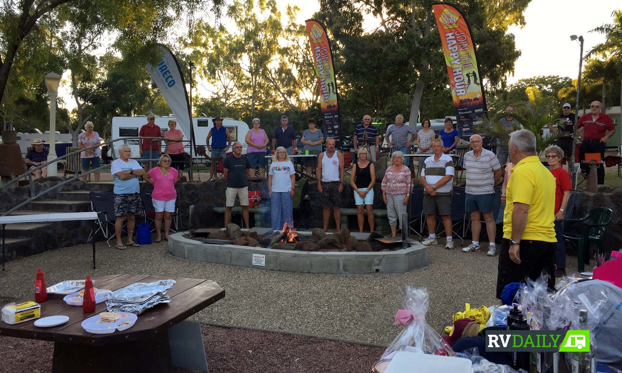 Back at the caravan park, we held our happy hour at the park’s amphitheatre, which was well set up for our event. We’re finding more and more caravan parks these days host happy hours where pizza nights, camp oven roasts, and even sausage sizzles are becoming the norm as they bring everyone together. (See page 43 of this issue). The generous Aussie spirit flowed that night and, overall, our fundraising efforts ended up generating more than $14,000 over the three months … not a bad result!