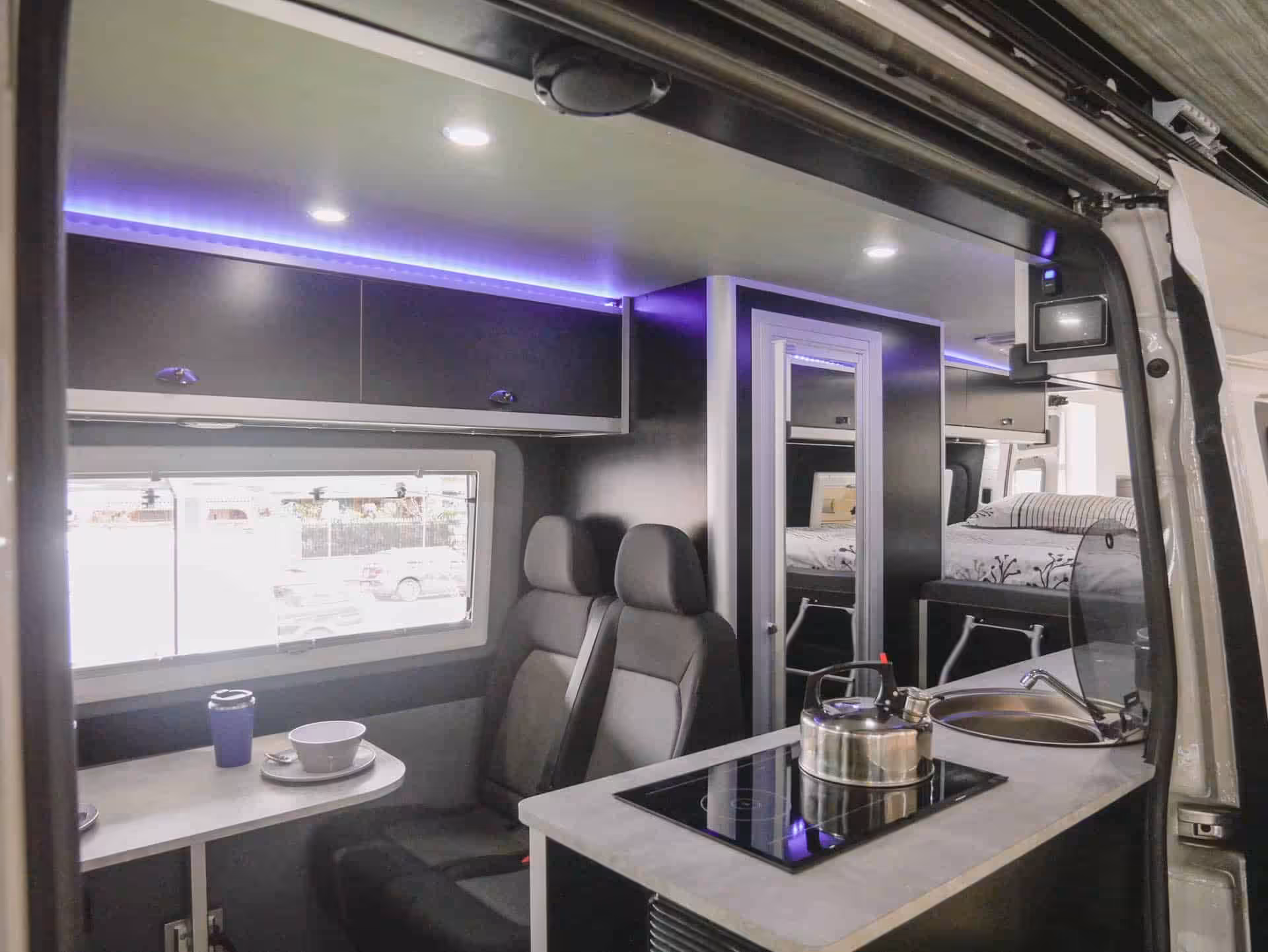 Now comes the fun part. Choose from four different layout options in a choice of finishes and colours. Focus on the things that are important to you, whether that be additional passenger seats, larger dining space, beds, a roof deck or extra internal storage for your golf clubs. For those that need to work on the road, you’ll want to ensure WiFi and great connectivity. Basically, these vans are custom-built just for you.