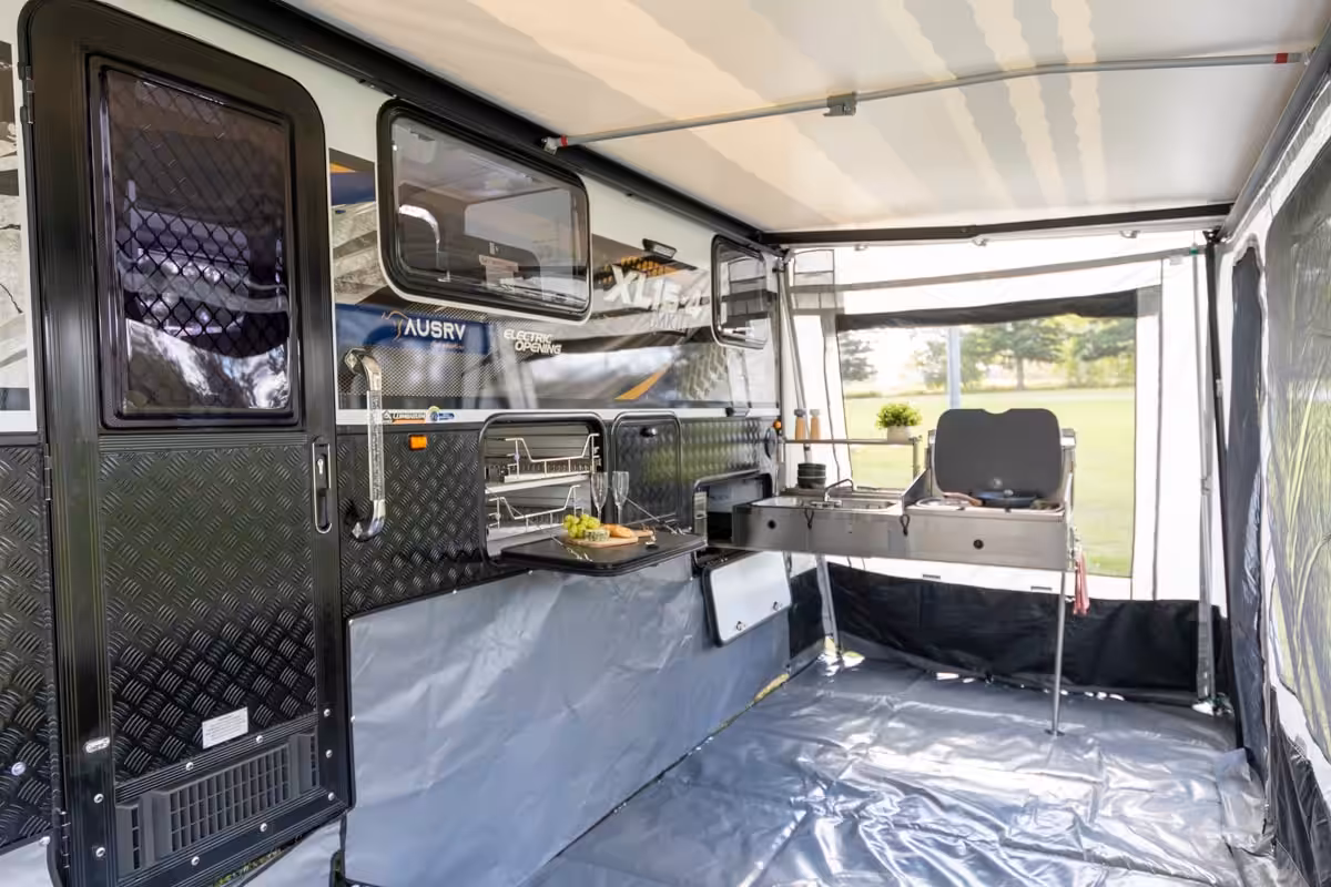 Launched at Melbourne Leisurefest on October 6, 2022, their new AusRV XL MKII range looks to build on this success with a host of great upgrades. Made up of the AusRV XL13E MKII and the larger family-sized AusRV XL15-4E MKII, MDC has launched this range aiming to be the best-featured hybrid caravans in their class.