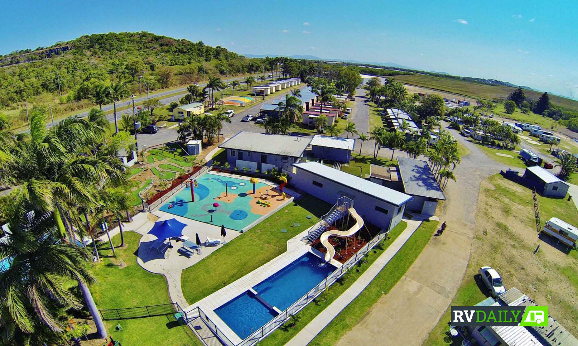 Powered sites start from $35 a night. As well as the usual amenities, there is also a bouncing pillow, swimming pool, playground and kiosk.