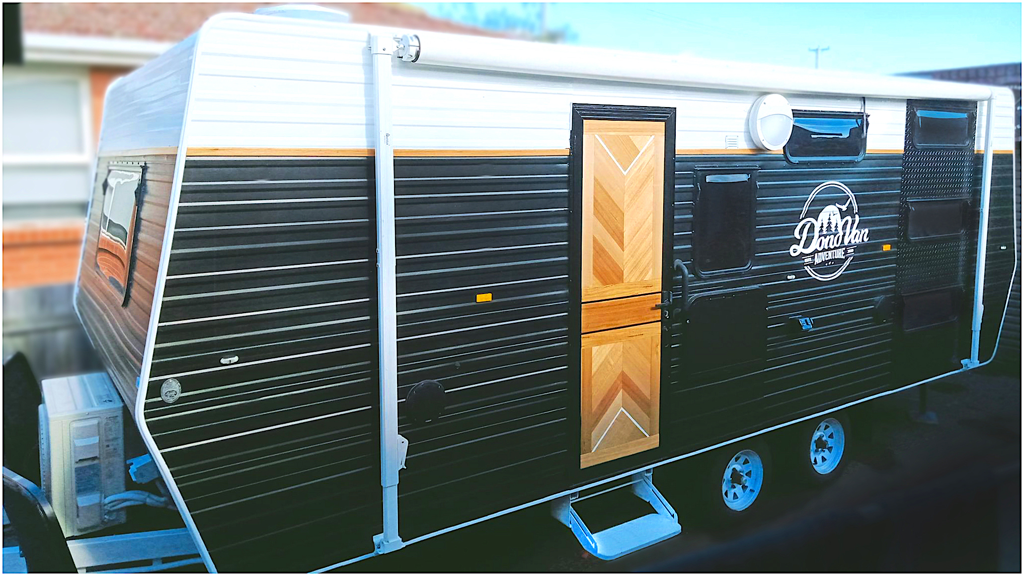 The unique exterior styling will ensure this van stands out at the caravan park. That wooden front door is amazing.