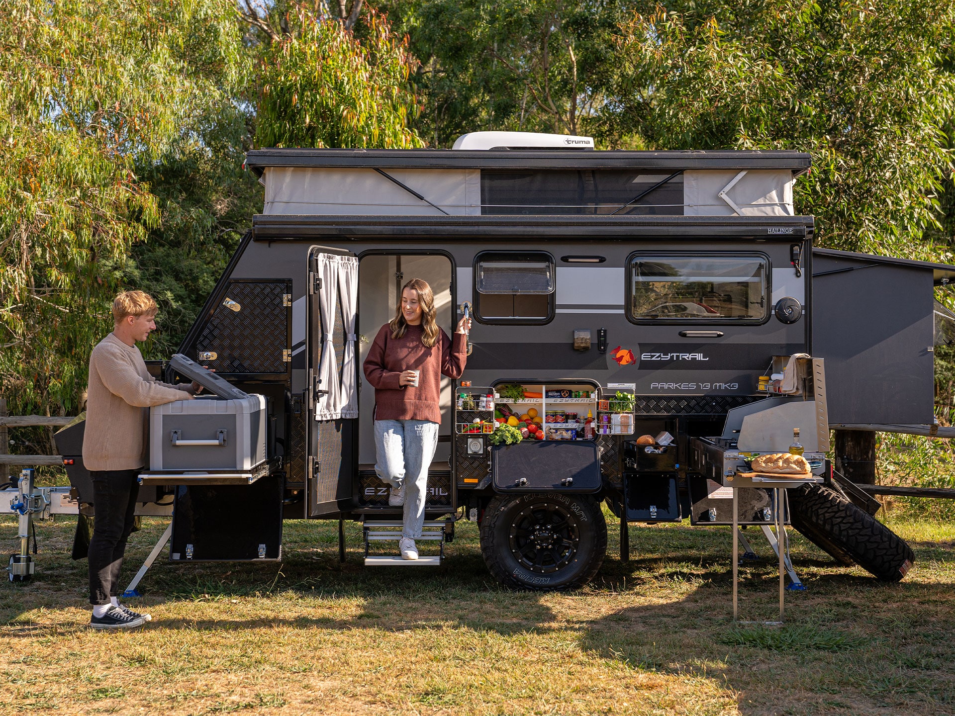Part caravan, part camper the F14 hybrid is not only incredibly easy to tow, but can also fit into most suburban garages thanks to its relatively low 2.06m height (the lowest in Cub hybrid history) in the folded down position. It also tows fairly well, tipping the scales at a modest 1730kg tare and 170kg ball weight. So it can comfortably be lugged behind many SUVs and pretty much all mid-sized 4X4s.