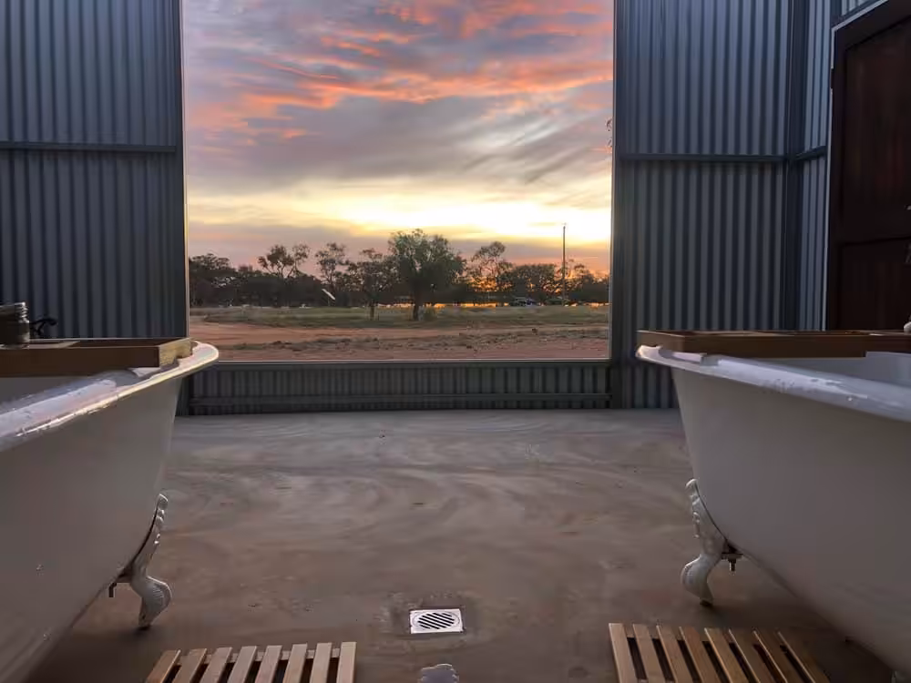 Alroy Station is a working sheep and cattle station in Outback QLD with plenty of space to camp and giant outdoor tubs for a magical hot spring soak under the stars.