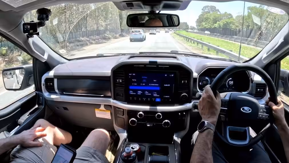For this test, I mapped out a route starting from AusEV’s HQ. It comprised a freeway drive, a semi-rural drive and some suburb driving, although the last two merged into one in practice. I drove my own Ranger PX around the route, then hooked up my 2350kg MDC 12+ hybrid caravan and towed that, recording fuel consumption both times. I then drove the Ford F-150 Lightning around and then hooked up my trailer for towing, again recording consumption. By using my own trailer, I could evaluate the Lightning as I know exactly how my own van tows behind my own car and also others I’ve towed it with.
