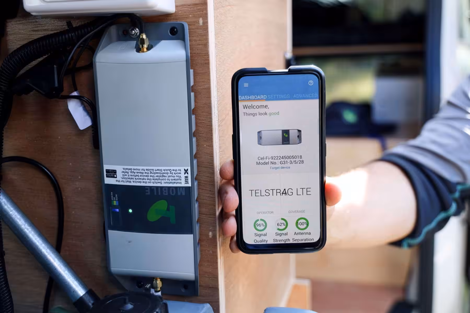 This last trip away, I’ve been trialling a Telstra T-Go repeater which we’ve had installed in our van. In short, it greatly helps in some areas but can only be relied on in some situations. If there is a skerrick of mobile reception, the T-Go will boost it to a usable degree. If there is no reception at all to start with, then you get no reception – simple!