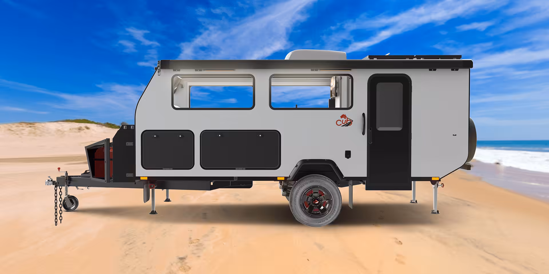 The H16’s engineering team, spearheaded by Cub’s visionary Managing Director and owner, Shane Fagan, has toiled diligently to forge a pop-top masterpiece. Marrying their signature Australian design prowess with premium materials, the H16 is fortified to endure. Cub’s discernment extended to the selection of pop top material, where rugged PVC replaces traditional canvas, affording heightened durability, easier maintenance, and superior tear resistance.