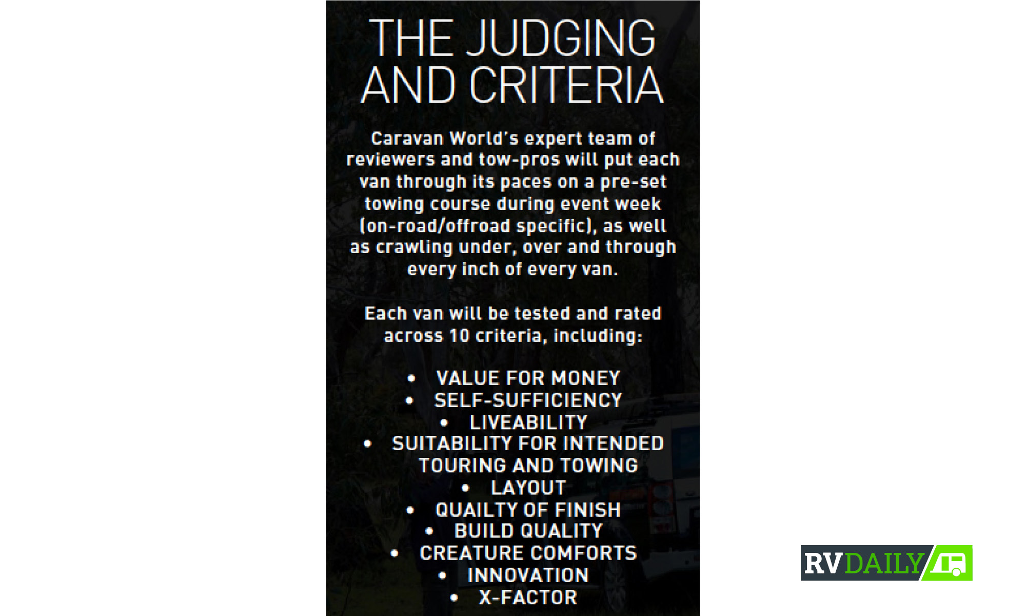 The annual Best Aussie Vans event, run in 2018 out of Moama, NSW, involves caravans from various Australian manufacturers in a week-long trial that subjects the model entrants to supposedly rigorous scrutiny by a judging panel made up of journalists and commentators. The competition has been running for many years and built on a solid reputation under previous stewardship of several publishing houses. While the view from outside may be one of trust, the value stakes change when it’s taken into account that the entrants aren’t selected on merit, or by simple invitation, but gain entrance on uptake of a sponsorship package with the media house responsible for publishing the results. This can cost up to $15,000 and offers varying amounts of resulting coverage.