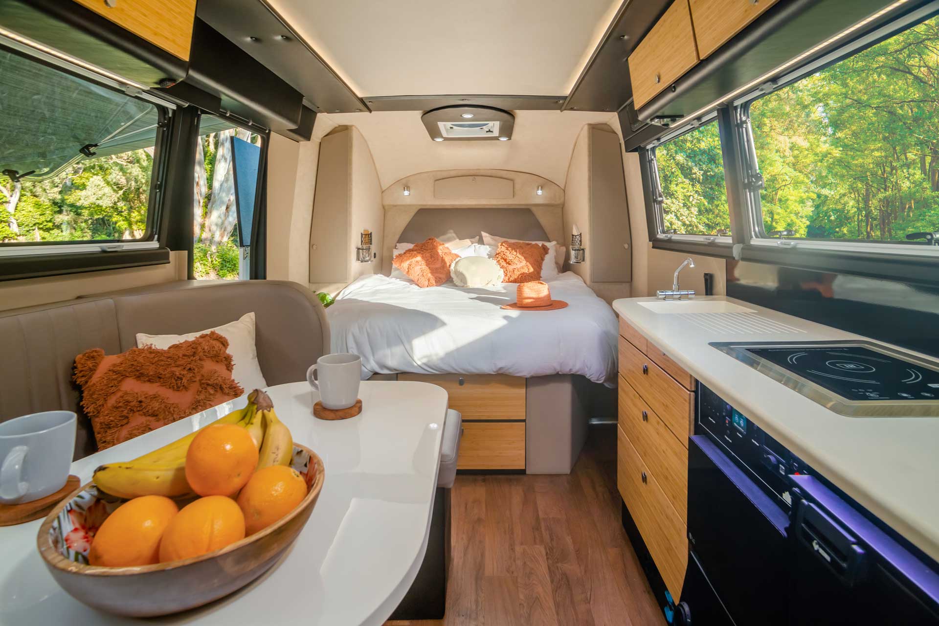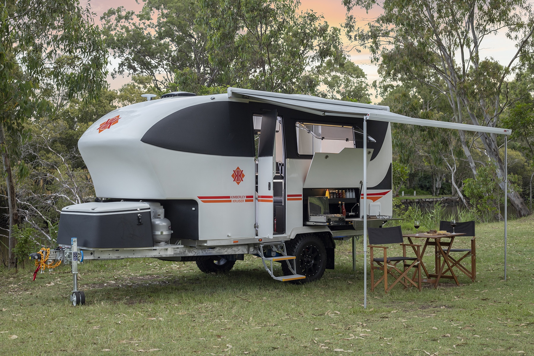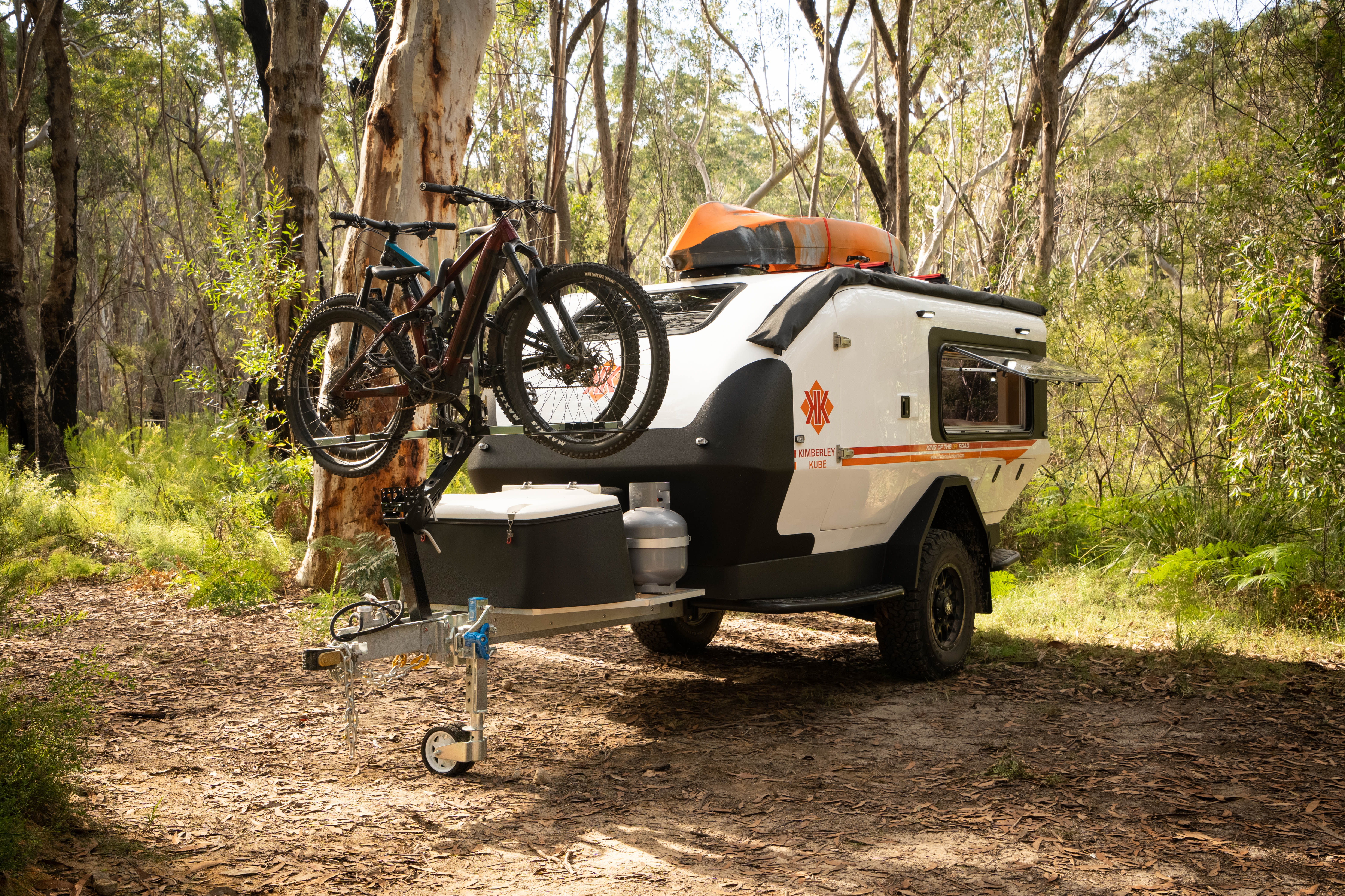 Designed for off-road and off-grid travel, each KK RV embodies the brand’s ‘travel small, live large’ ethos. Even in the smallest model teardrops you will find up to 400W of solar supported by 460Ah of lithium batteries, while the more expensive models have a 48V EcoFlow power system. Kimberley Kampers are known for their distinctive design. You can recognise a KK RV anywhere by their pindan-dirt red and orange motif, black trims and rounded nose. Failing that, keep an eye out for those Telstra technicians.