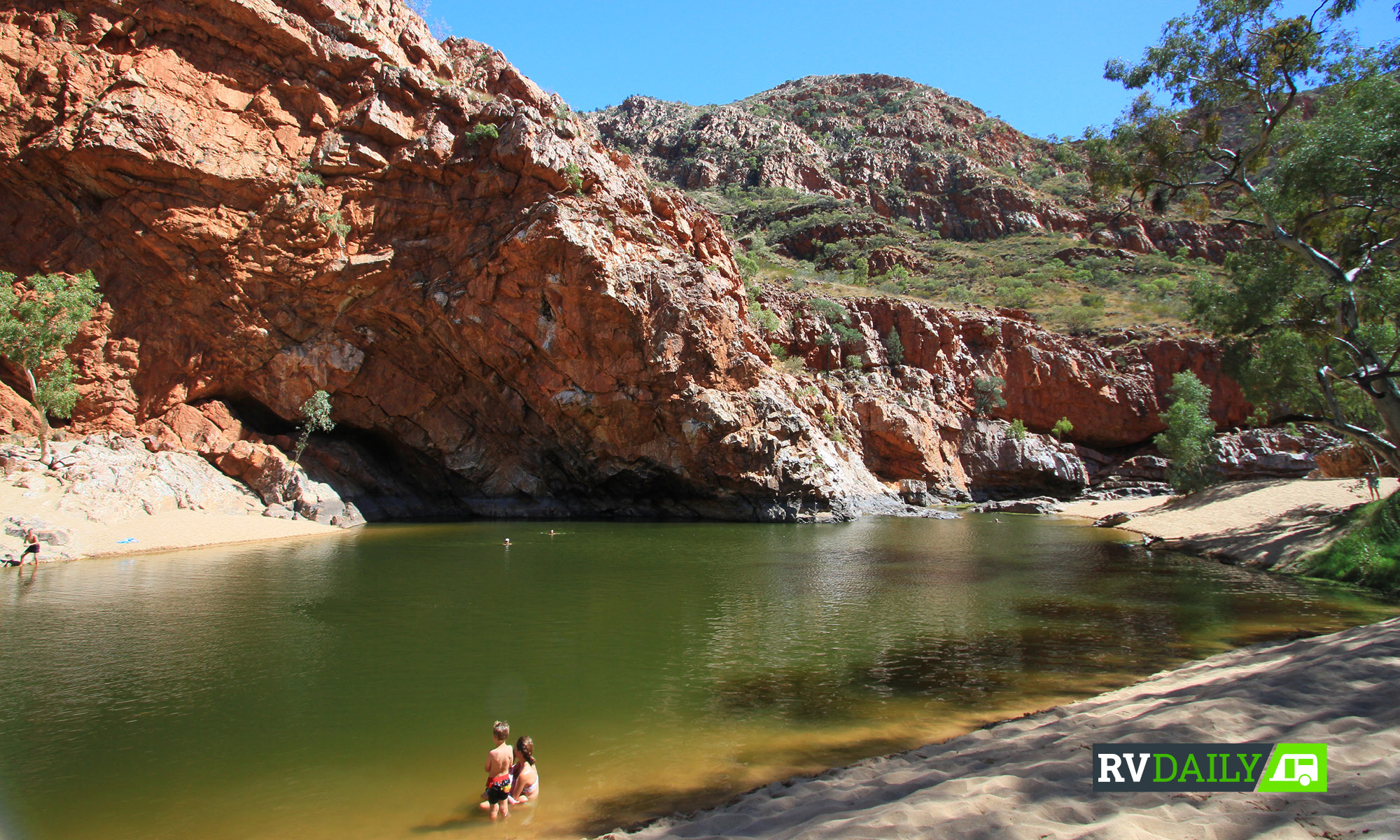 The camp at Yulara is fantastic, with lush grassy sites upon which to pitch your tent, and they were surprisingly more appealing than their dusty van counterparts. Our next destination was Kings Canyon Resort, a comfortable drive before the more challenging Mereenie Loop, our route to Glen Helen Gorge. We were surprised by the condition of the road, which was excellent, noting that it would be more than suitable for most vans and RVs.