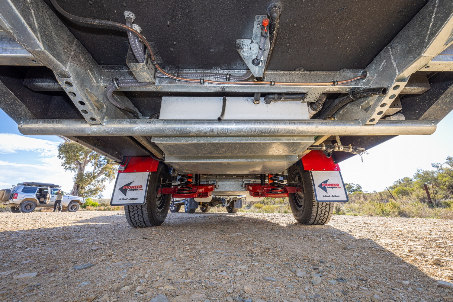 Pioneer Campers drew our attention to their hot-dipped galvanised chassis, noting that they layer on 55 microns compared to the industry-standard 14. The chassis is also their own custom design, not an off-the-shelf unit from a chassis manufacturer, and the company claims to have the largest and most qualified engineering staff in the industry.