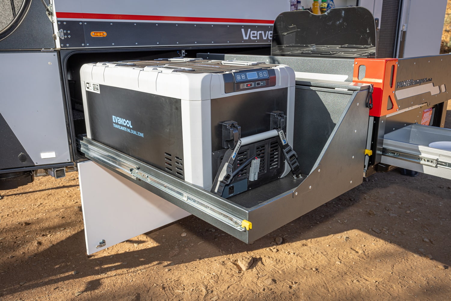 Verve from Pioneer Campers comes standard with a 95L dual-zone fridge, selectable water tanks, and manual central locking for drawers, which Pioneer claim is a first.