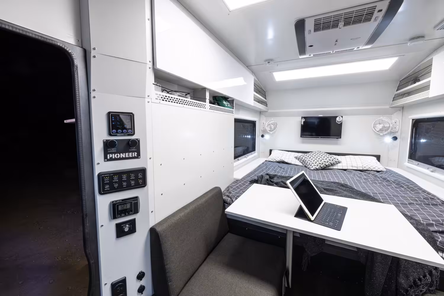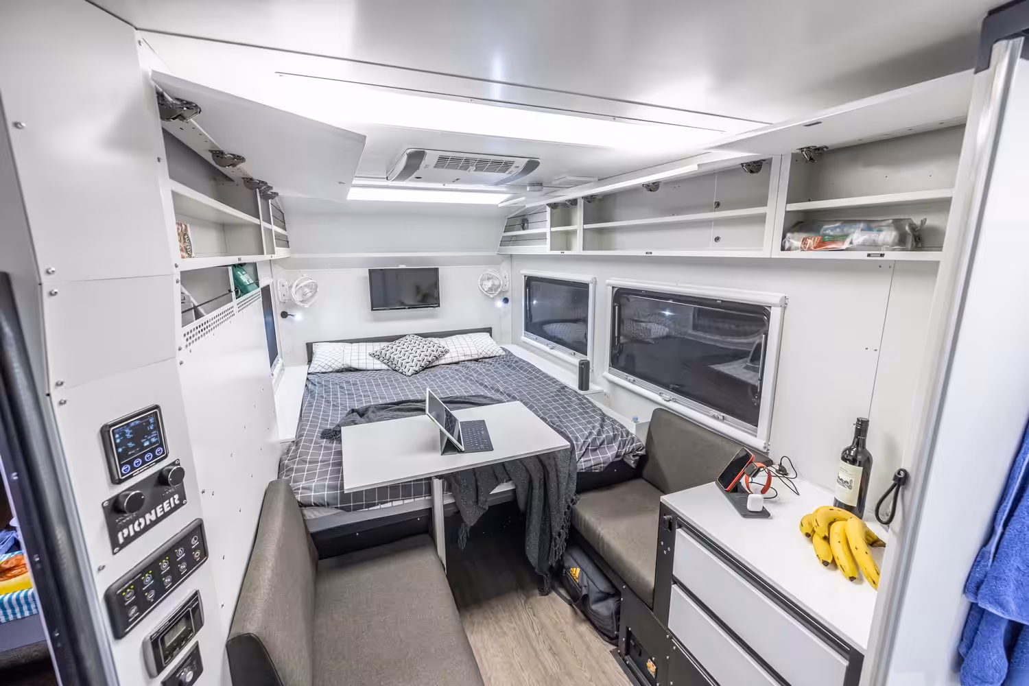 Verve from Pioneer Campers comes standard with a 95L dual-zone fridge, selectable water tanks, and manual central locking for drawers, which Pioneer claim is a first.