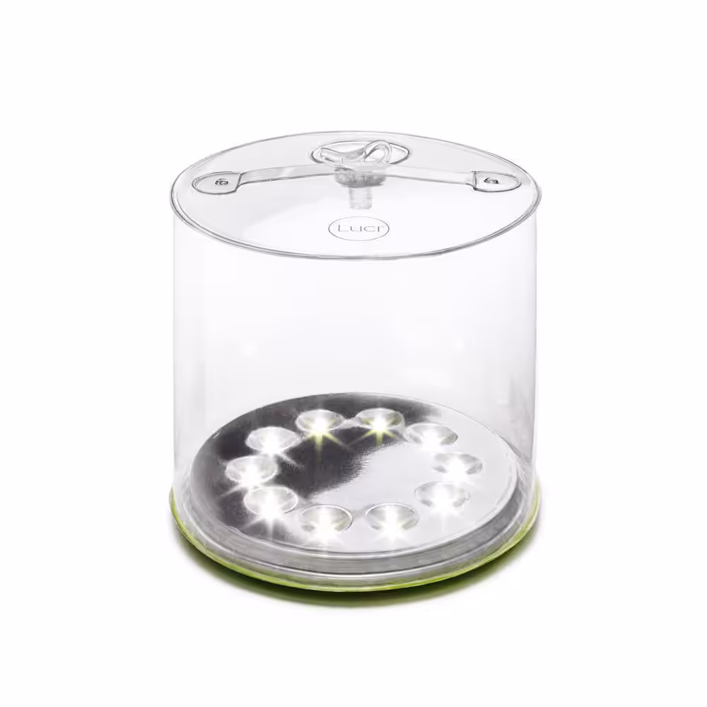 The Luci inflatable solar light survived my kids and held up really well. It got rained on, thrown around the tent (although I don’t recommend this), floated in the pool and the charge is yet to deplete. I think this is in part because it gets left outside on the table during the day and partially charges back up.