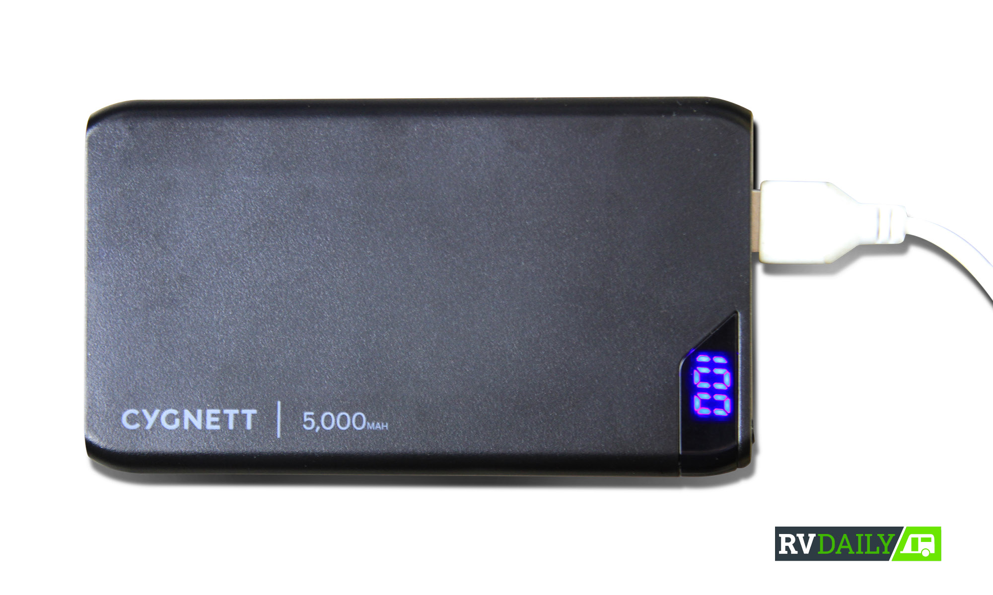 Rechargeable 5000 milliamp lithium battery tucks away behind the power panel