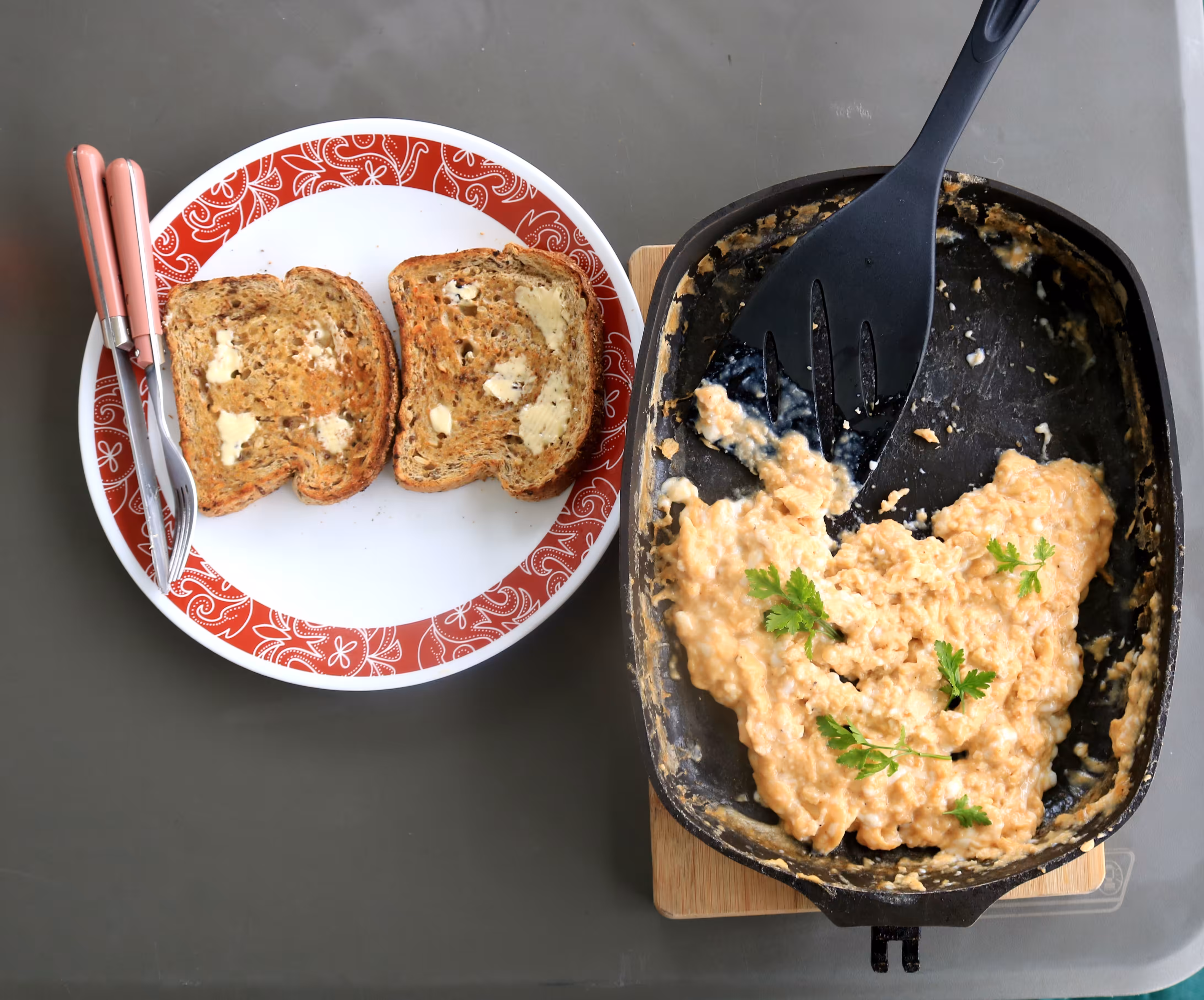 The frying pan is big enough to make a hearty camping breakfast for two, (did someone say spicy tomato and egg Shakshuka?!) For dinner, it’s perfect for a slow roasted pork belly or rolled lamb and veggies.