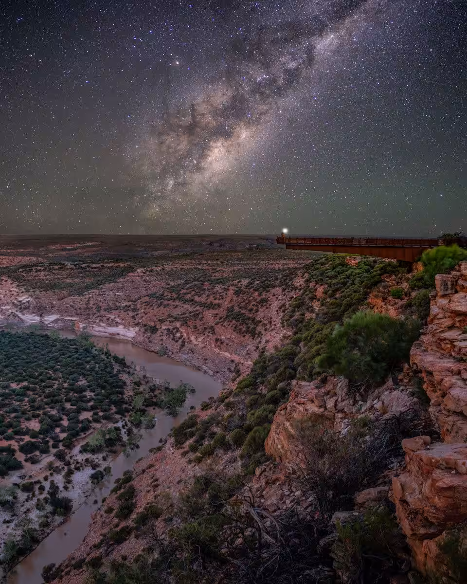From here, you can observe the gorge’s red molten bands millions of years in the making and a forest of toy-like trees blanketing the gorge floor. Make sure to visit Nature’s Window, undoubtedly the park’s most photographed attraction. The natural arch frames the upstream view of the Murchison River, making it a popular spot for snap-happy road trippers.