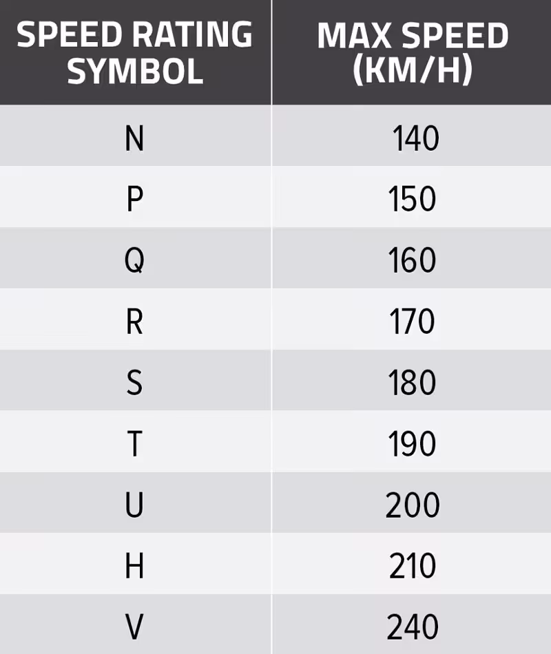 An All-Terrain tyre in LT construction is a good compromise for your 4×4 tow vehicle for both on-road driving and towing off-road. While A/T tyres typically have a lower speed rating than an H/T tyre — often between T and H – this is still beyond the highest speed you can legally tow at (see speed-rating chart below). They also have a higher load rating and more open, aggressive tread pattern for better off-road performance.