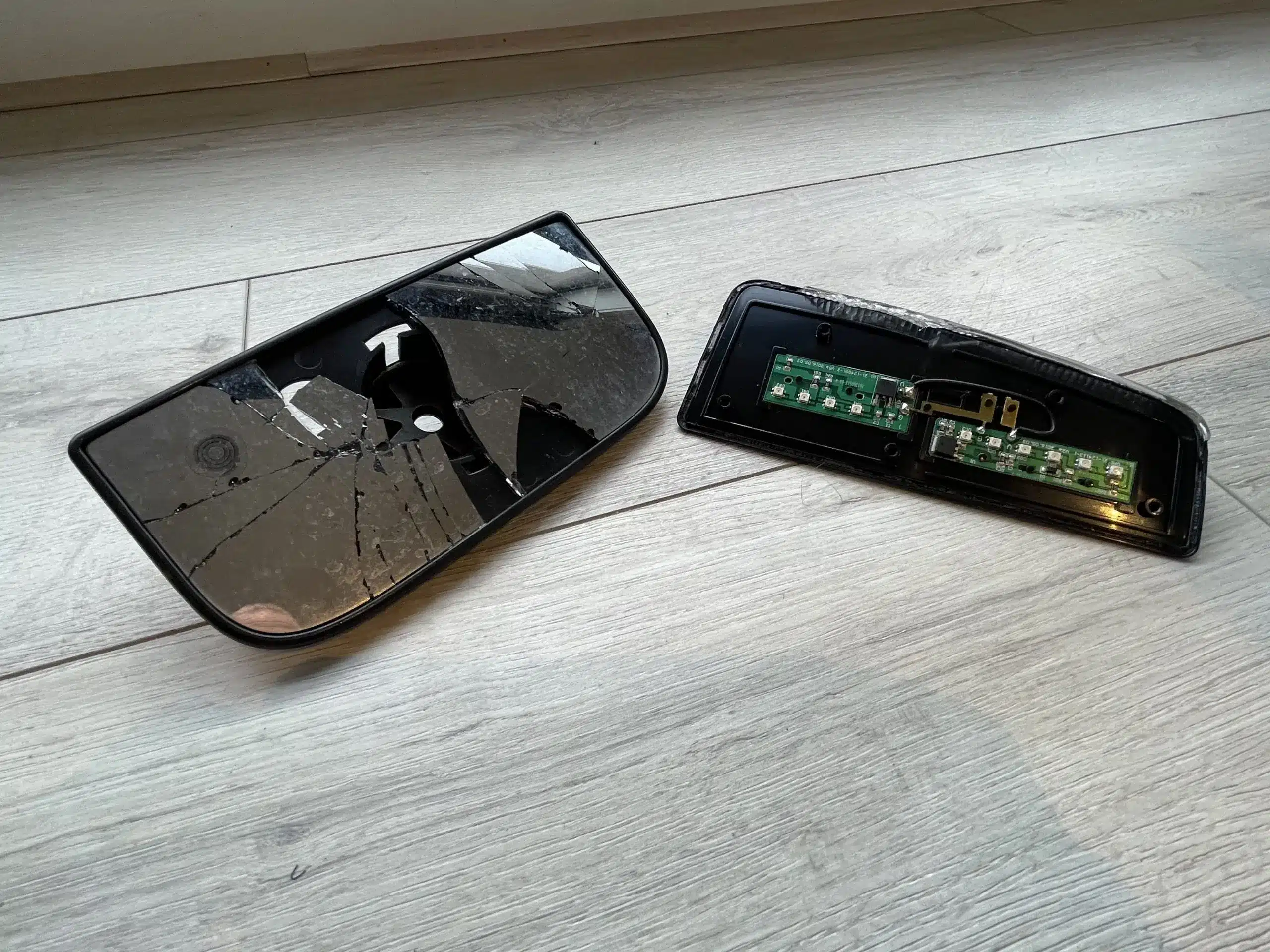The damaged mirror and indicator were beyond repair and had to be replaced