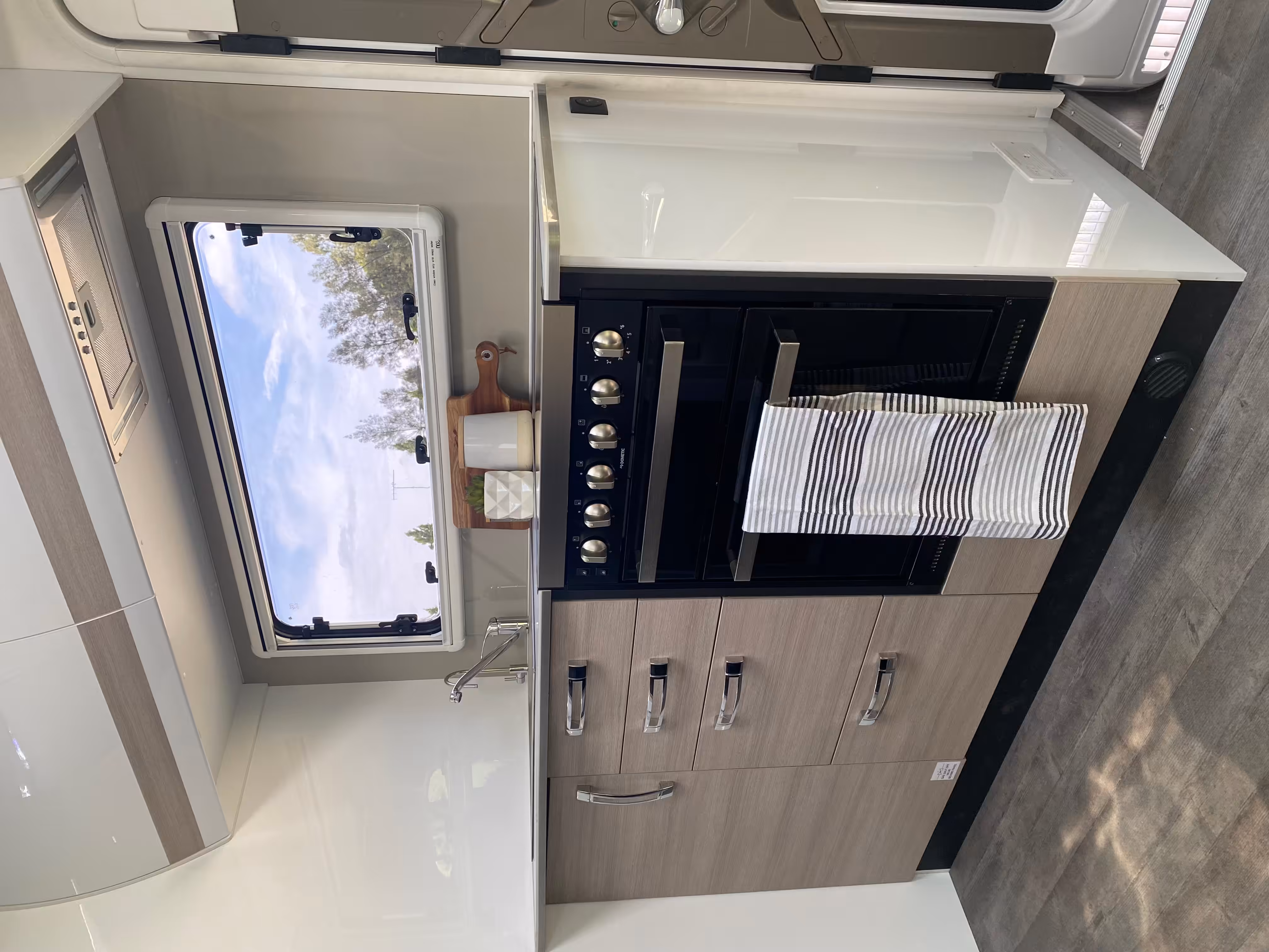 Standard features in the Avida Fremantle include two air-con units, leather upholstery, 4kw diesel heater, three 120A lithium batteries, 680watt of solar, 3.6KVa generator and a 3000VA inverter. A vacuum cleaner can be found tucked neatly inside the cupboard, making it easy to keep your motorhome spotless.