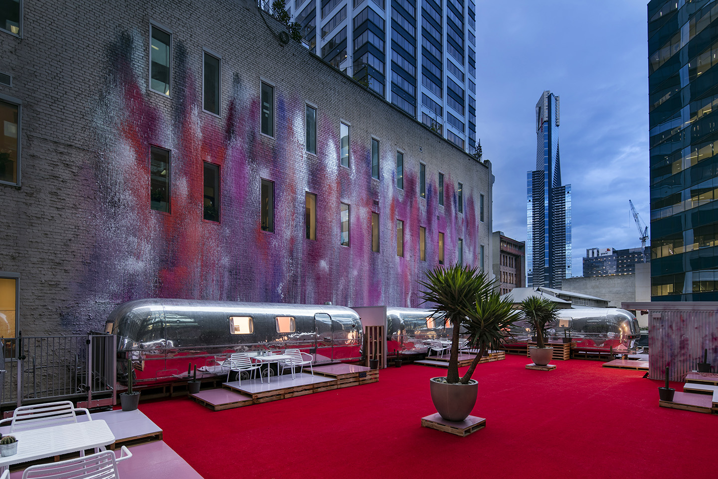 Located on the rooftop of a CBD car park in Flinders Lane, the Notel features six 1970’S Airstream Caravans (or travel trailers as they are known in their native homeland) all completely retrofitted and restored as ‘designer urban accommodation’. This is luxury glamping at its finest. Each van includes a free minibar stocked with wine, beer, soda and snacks, complimentary Wifi and Netflix via iPad Pro, an in-room HP Sprocket photo printer to capture rooftop moments and selfies and free on-site valet parking. You are not wanting for anything with these vans. They all feature a queen-sized bed with premium linen, pillows, and organic bamboo sheets all from ECOSA. The ensuite bathroom features a full-height shower and complimentary toiletries, with towels from Sheridan, no less. A virtual concierge is run through the iPad and helps you find the best spots in Melbourne’s CBD to eat, drink and play.