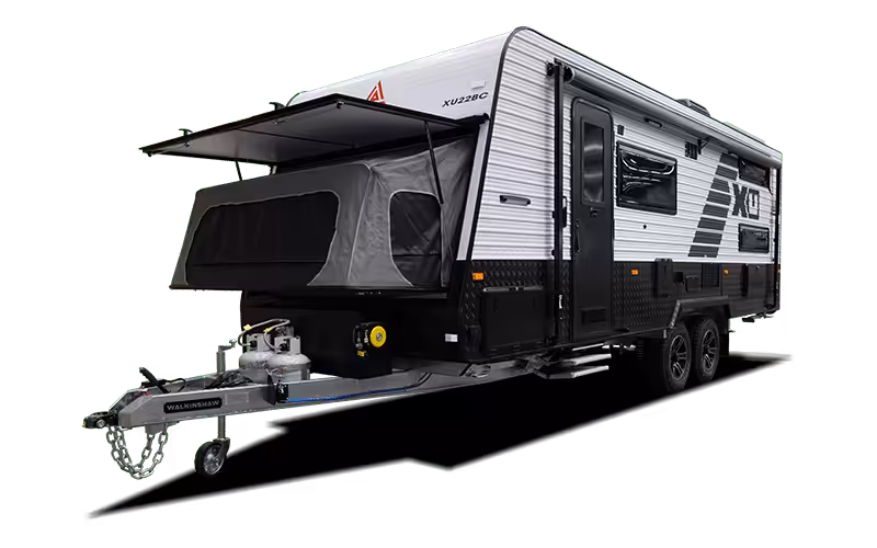 A pop-top slide-out caravan is exactly how it sounds, a marriage of both types of caravans. The slide-out in a pop-top slide-out is always at the bed ends, making them more compact than most when packed up for travel. The Jayco Expander Outback and Jayco Swan in the images above are both great examples of this type of caravan.