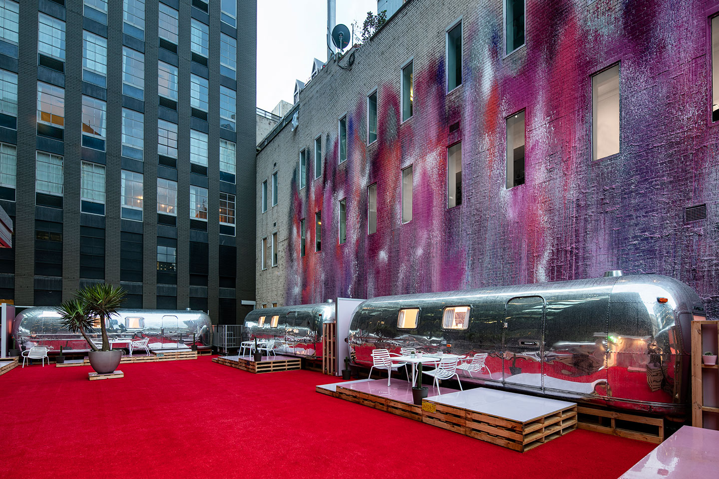 Now here’s something a little different for you. The ‘Notel’ is a collection of six boutique ’70s Airstream caravans on the rooftop of a multi-level carpark on Flinders Lane, right in the heart of Melbourne. Sourced from the west coast…